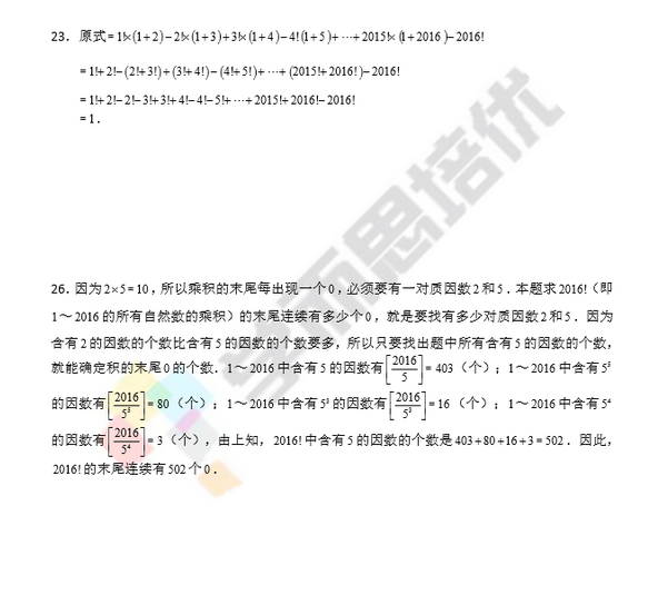 2017合肥六年级希望杯每日一练答案:阶乘