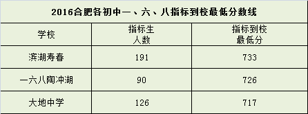 | 2016合肥各初中一、六、八指标到校最低分数线 | ||