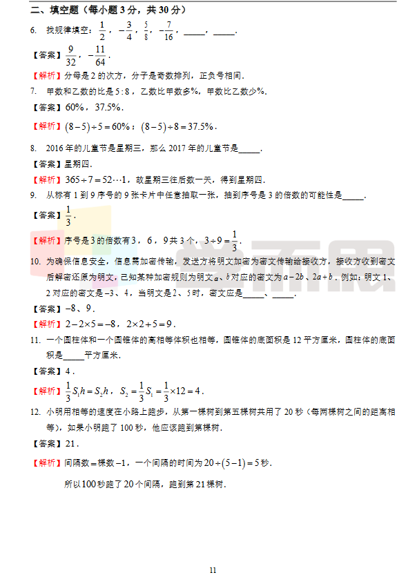 2017年合肥名校小升初数学模拟试卷(二)(2)