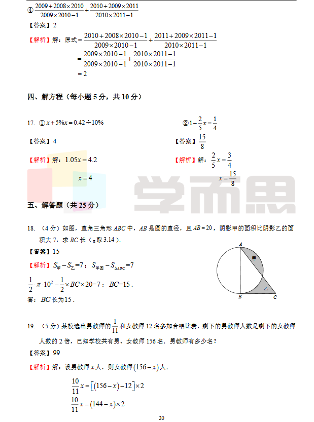 2017年合肥名校小升初数学模拟试卷(三)(5)