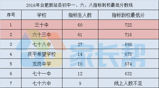 关注合肥六十三中的家长可以注意下!下面是关于合肥六十三中在新站的一六八到校指标最低分数线~供大家作为择校参考!六十三中在新站各初中里算是不错的学校~大家可以参考下哈~