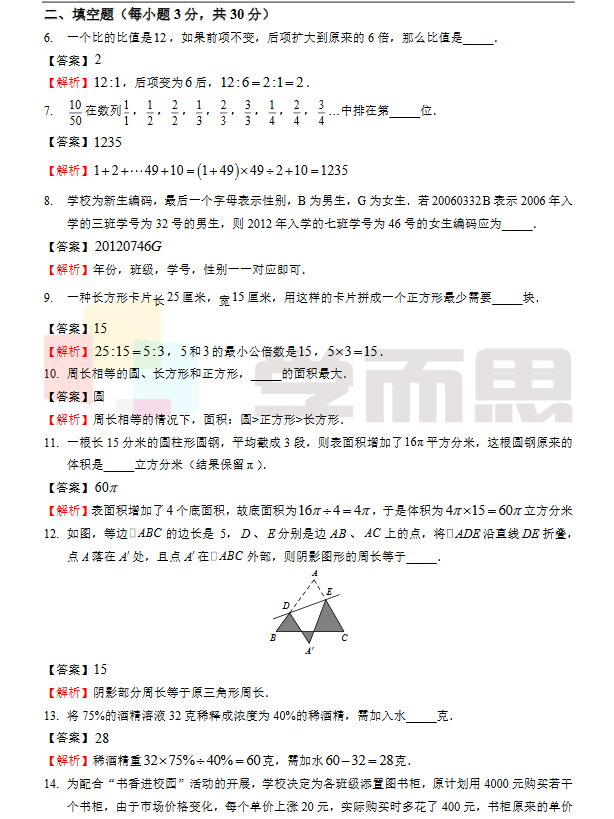 2017年合肥名校小升初数学模拟试卷(五)(2)