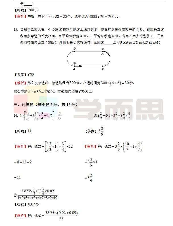 2017年合肥名校小升初数学模拟试卷(五)(3)
