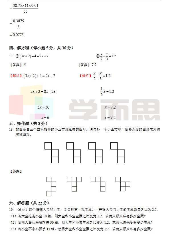 2017年合肥名校小升初数学模拟试卷(五)(4)