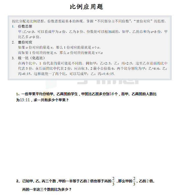 合肥五年级备战暑秋入学测——比例应用题
