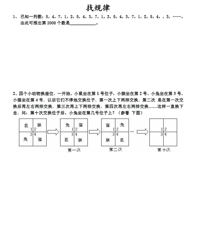 合肥五年级备战暑秋入学测——找规律