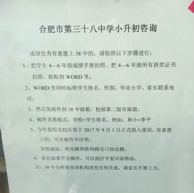 备注:38中是邮件报名,但是并不会给予回复。2017年只有少数家长重复发送邮件后,学校回复:已收到。