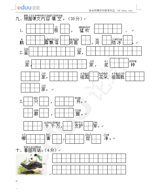 合肥小学一年级上册语文期末考试卷(一)(3)