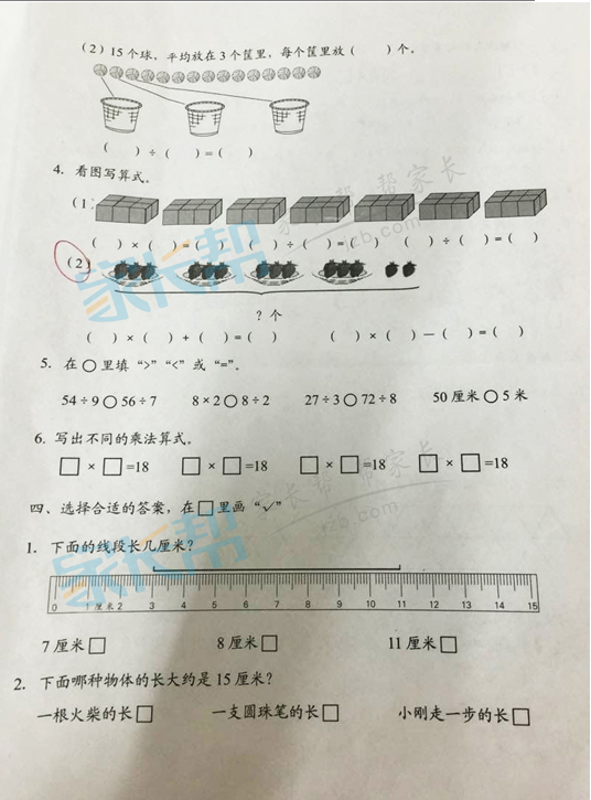 2014~2015合肥南门小学二年级期末数学试卷(2)