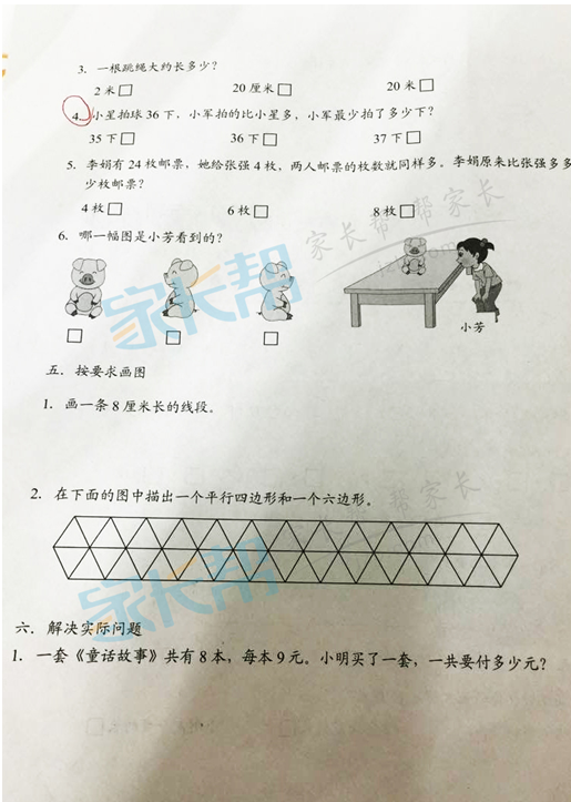 2014~2015合肥南门小学二年级期末数学试卷(3)