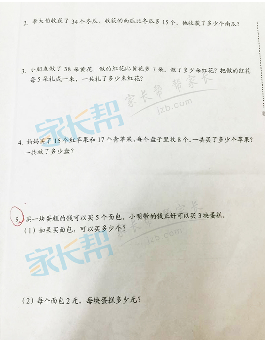 2014~2015合肥南门小学二年级期末数学试卷(4)