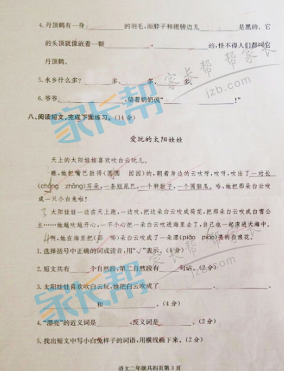 2014~2015合肥钢小、海顿二年级期末语文试卷(3)