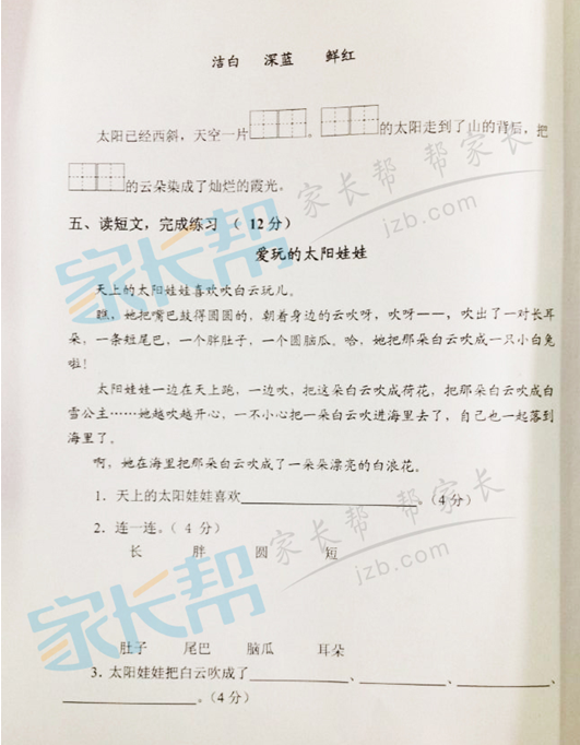 2014~2015合肥南门小学二年级期末语文试卷(3)