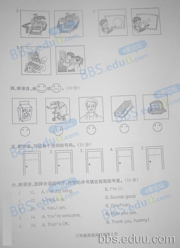 2011-2012合肥庐阳区小学三年级上期末考英语试卷(2)