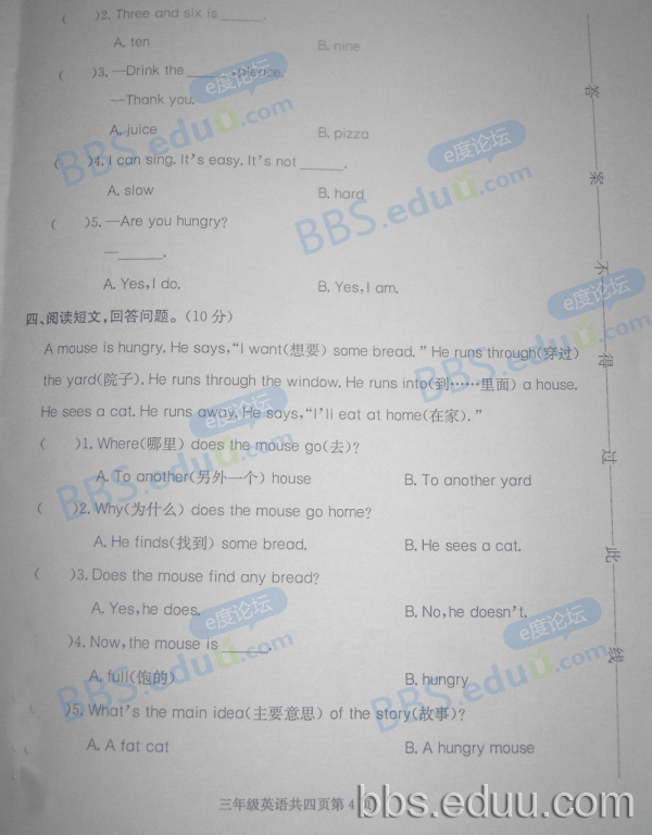 2011-2012合肥庐阳区小学三年级上期末考英语试卷(4)
