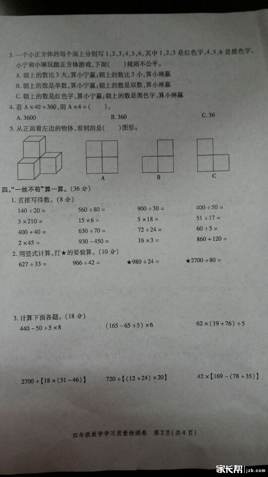 合肥瑶海区小学四年级期末考数学试卷(4)