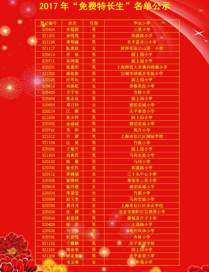 2017合肥新站寿春实验小升初“免费特长生”名单公示(2)