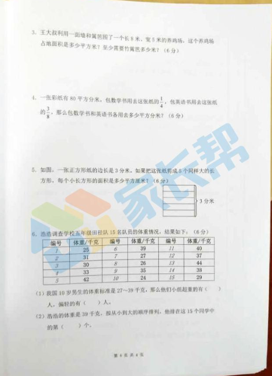 2016-2017合肥包河区下学期期末考三年级数学试卷(4)