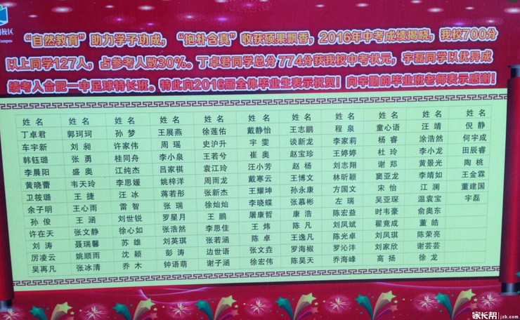 2015年梦园中考喜报:梦园中学2015届毕业生共187人,中考成绩750分以上6人,740分以上13人,700分以上共54人。