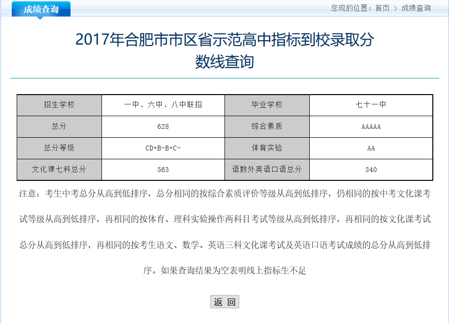 2017年合肥中考结束后,7月14日,各校一六八的指标到校最低分数线已经公布,下面是2017年合肥七十一中一六八指标到校最低分数线,欢迎大家查看!