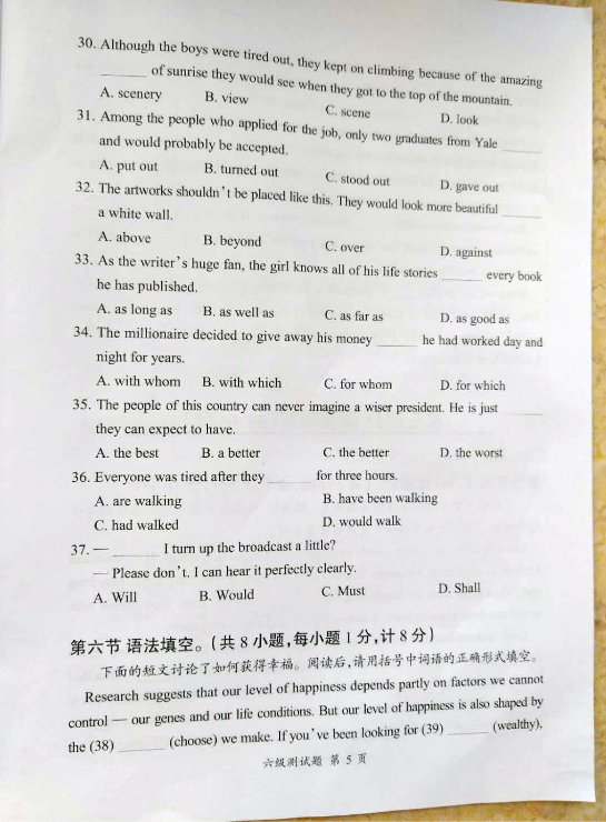 2017年合肥秋季习思六级真题试卷(5)