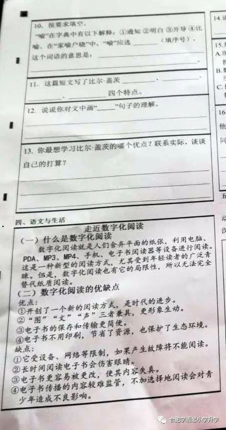 2017-2018合肥四年级上学期学业水平测试语文试卷(4)