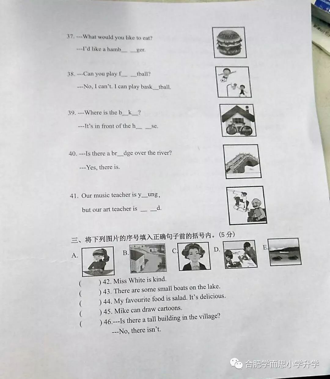 2017-2018合肥五年级上学期学业水平测试英语试卷(4)