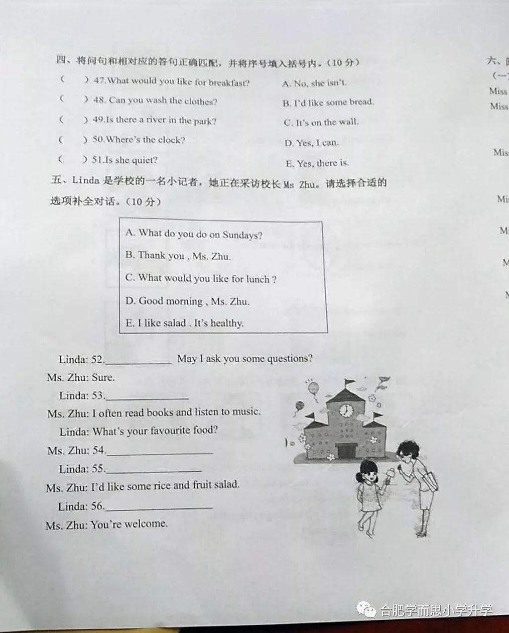 2017-2018合肥五年级上学期学业水平测试英语试卷(5)