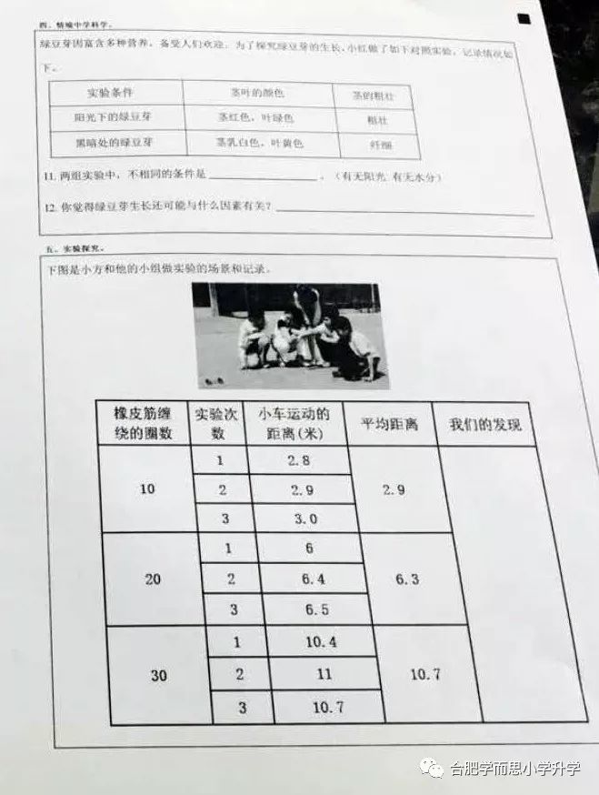 2017-2018合肥五年级上学期学业水平测试科学试卷(3)