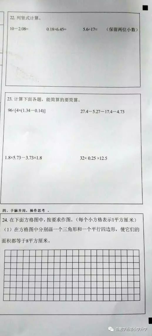 2017-2018合肥五年级上学期学业水平测试数学试卷(5)