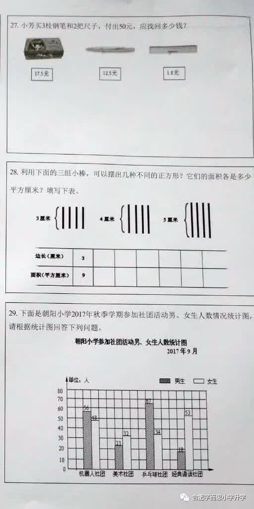 2017-2018合肥五年级上学期学业水平测试数学试卷(7)
