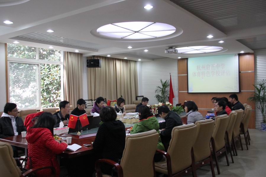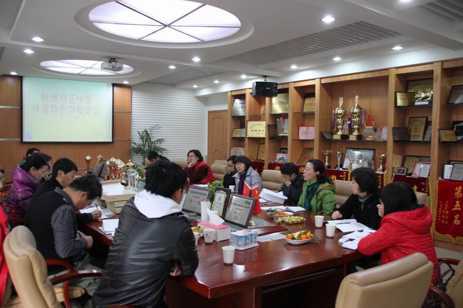 2010年12月22日早上,下城区教育局、杭州市体育特色考评领导小组来我校考评。欧自黎校长代表学校向考评专家组对我校申报市体育特色学校的验收表示欢迎,并作专项工作汇报。