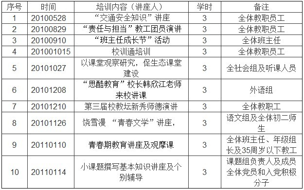 启正中学2010学年相关主题培训一览表