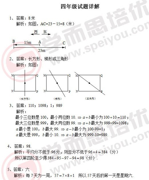 杭州奥数网3月20日:2012年第十届小学希望杯四年级初赛答案详解,由学而思老师专供。