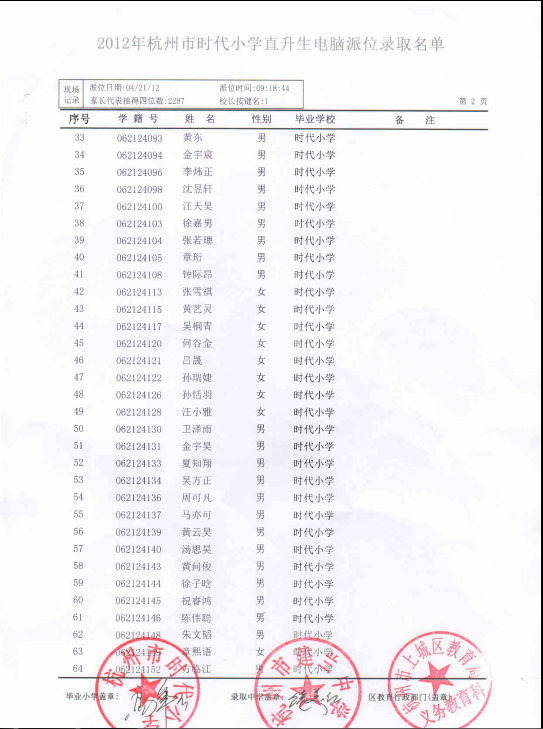 2012年时代小学直升建兰电脑派位名单(2)