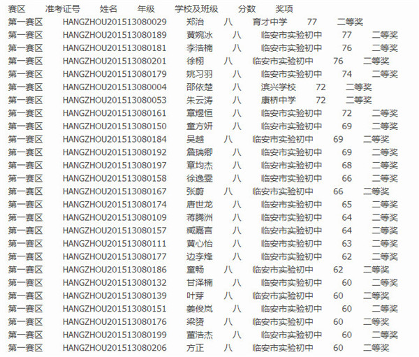 2015第13届走美杯杭州第一赛区八年级获奖名单(2)