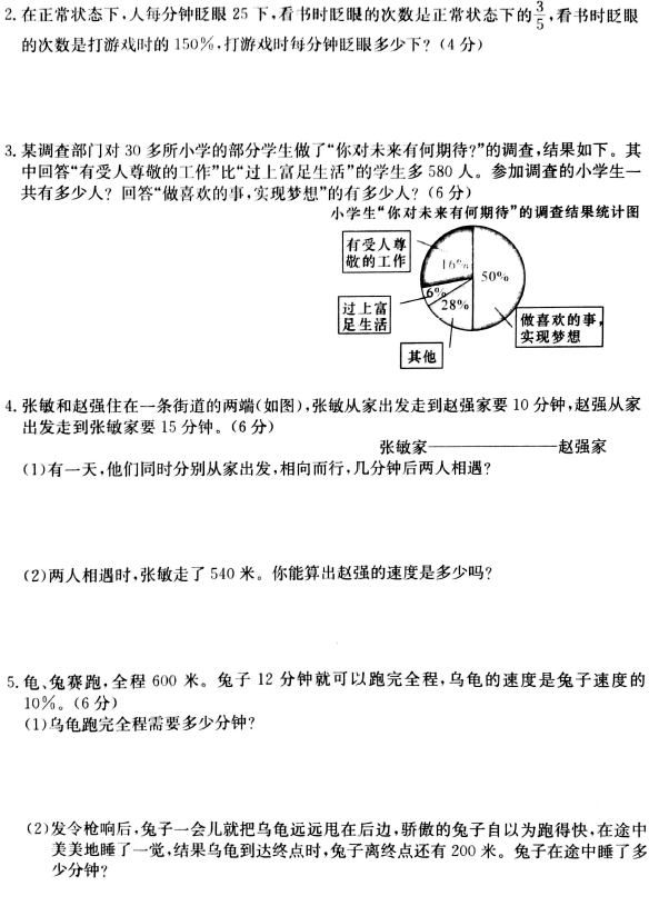 2015-2016年杭州江干区六上期末考试数学试卷(4)