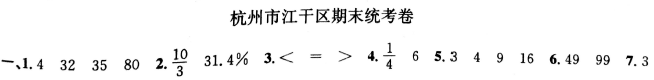 2015-2016年杭州江干区六上期末考试数学试卷(5)