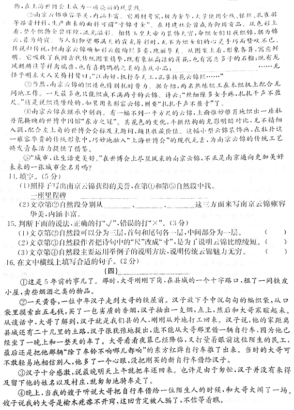 2015-2016年杭州江干区六上期末考试语文试卷(3)