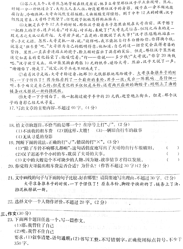 2015-2016年杭州江干区六上期末考试语文试卷(4)