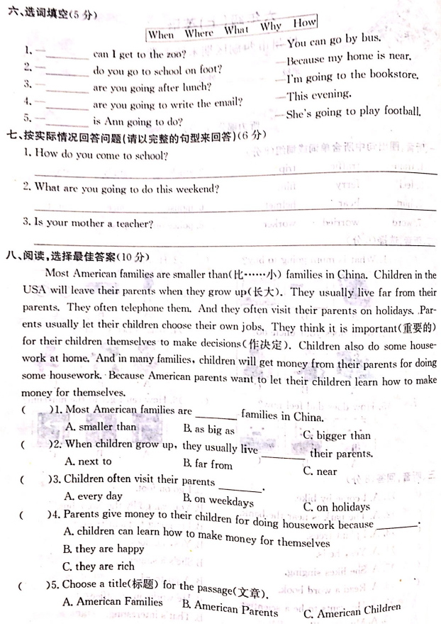 2015-2016年杭州西湖区六上期末考试英语试卷(4)