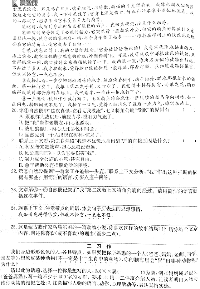 2015-2016年杭州西湖区六上期末考试语文试卷(4)