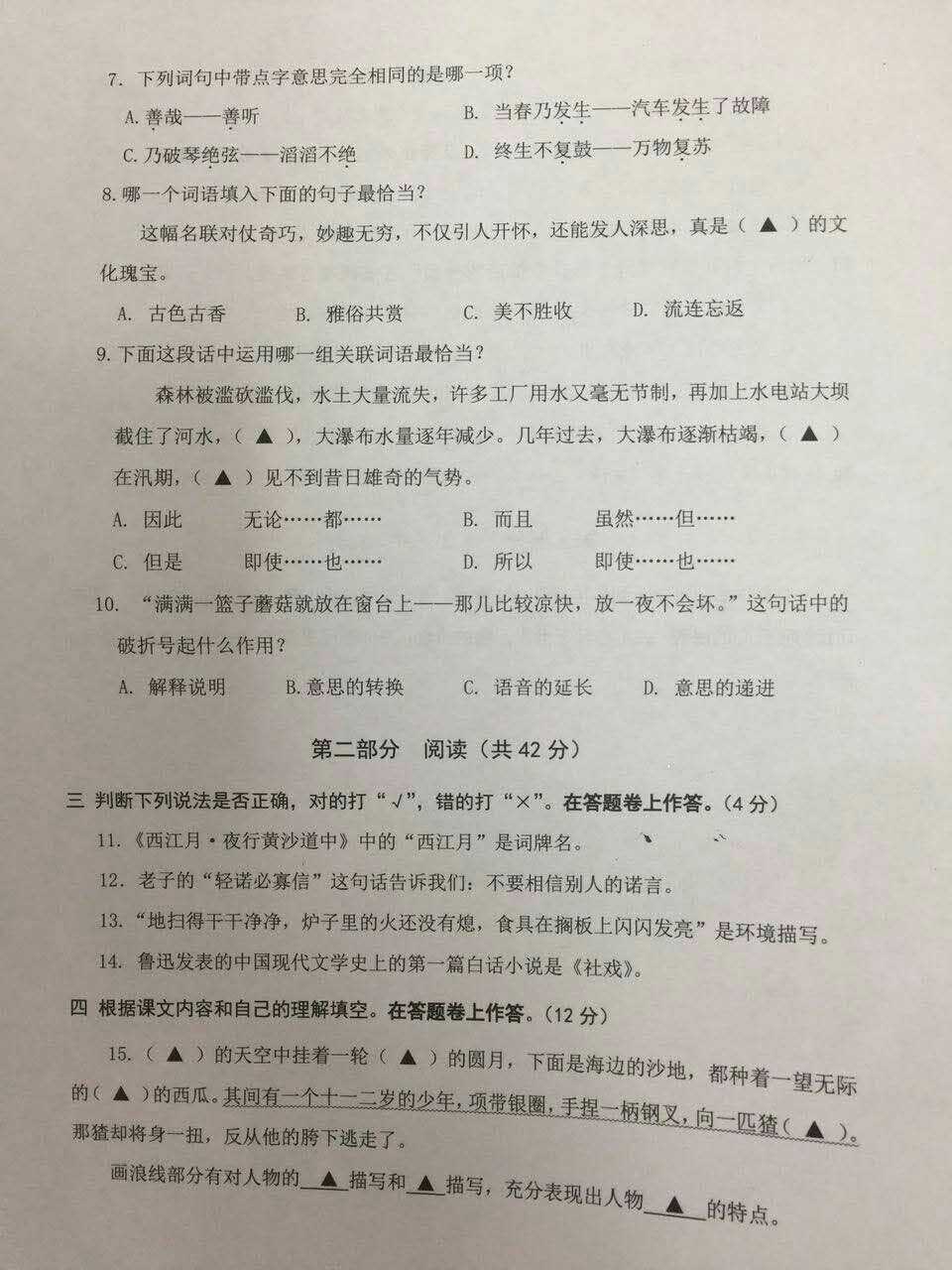 2016-2017年杭州下城区六上期末考试语文试卷(2)