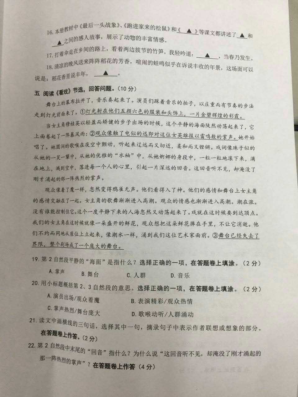 2016-2017年杭州下城区六上期末考试语文试卷(3)