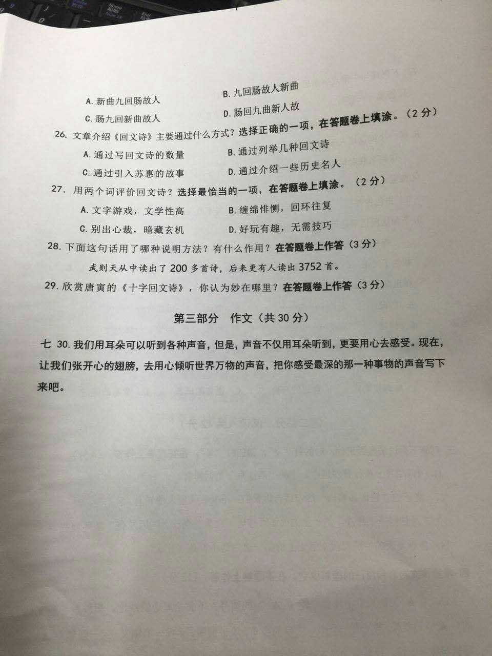 2016-2017年杭州下城区六上期末考试语文试卷(5)