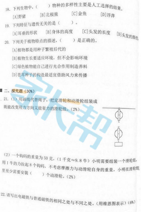 2016-2017年杭州上城区六上期末考试科学试卷(5)