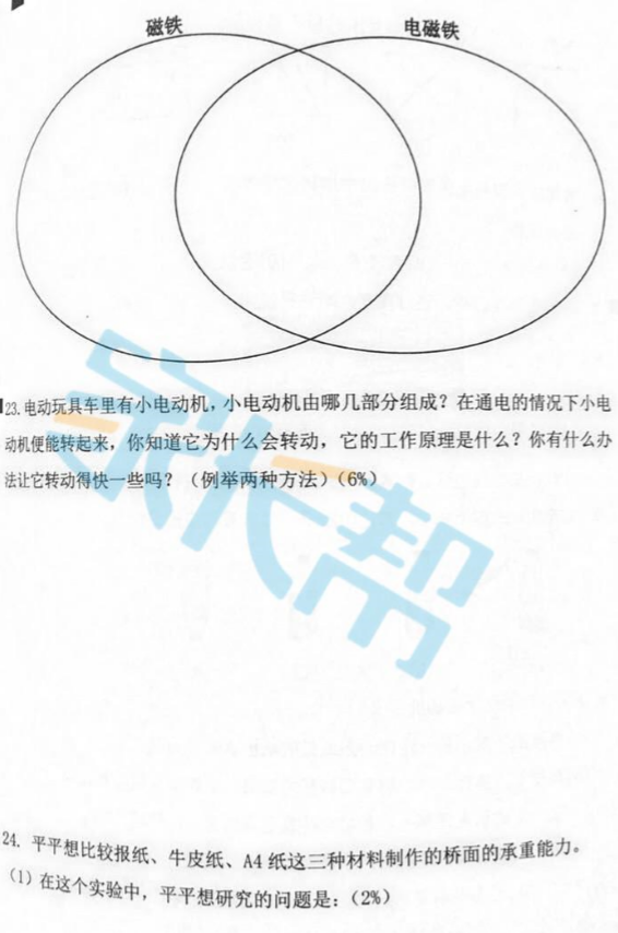 2016-2017年杭州上城区六上期末考试科学试卷(6)