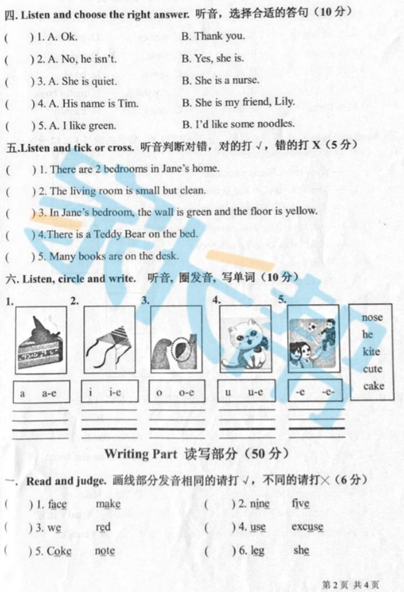 2015-2016年杭州西湖区四上期末考试英语试卷(2)