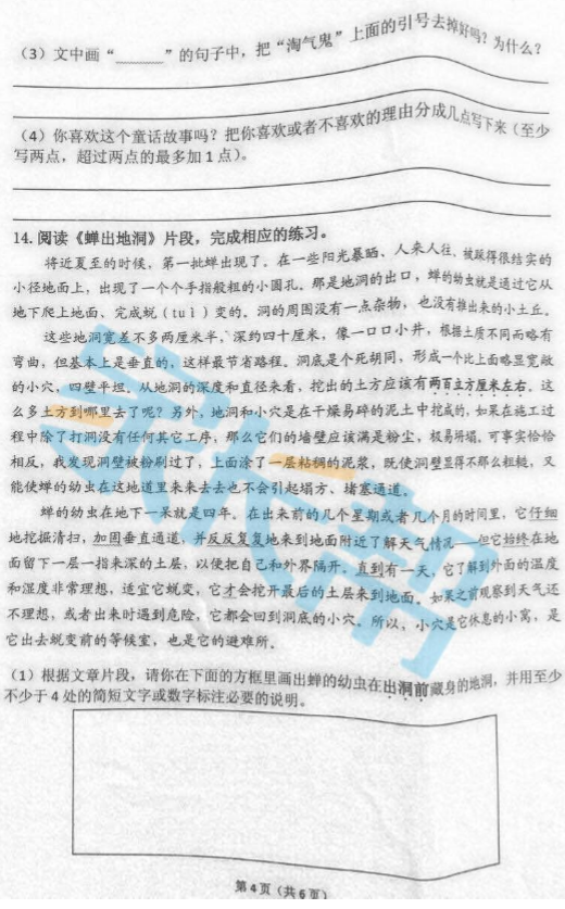 2015-2016年杭州西湖区四上期末考试语文试卷(4)