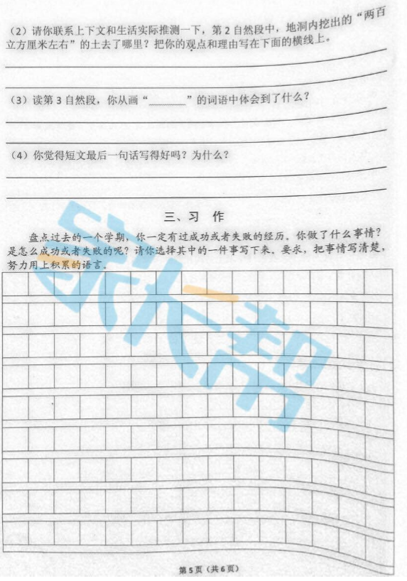 2015-2016年杭州西湖区四上期末考试语文试卷(5)